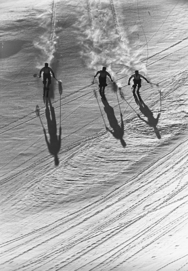 For Austria as a skiing nation Stefan Kruckenhauser (1905-1988) is regarded as the "inventor" of wedeln. His importance for Austria as a photographic nation is no less important. Schooled by the Arnold Fanck's mountain films, he began in the 30's with a dynamic and richly contrasting kind of photography which was unknown at the time. His camera of choice at the time was the relatively new Leica 35mm with a long focal length. Shortly before the outbreak of the Second World War he revolutionised contemporary photography by the use of the 35mm camera for landscape and architecture photographs and published the photo book "Verborgene Schönheit” which went through countless editions well into the 50's. In the post-war period of reconstruction he published the photo book " Ein Dorf wird", further impressive proof of his work. This work is the only Austrian photo book to find its way into Martin Parr's noteworthy reference work " The Photobook. A History ".