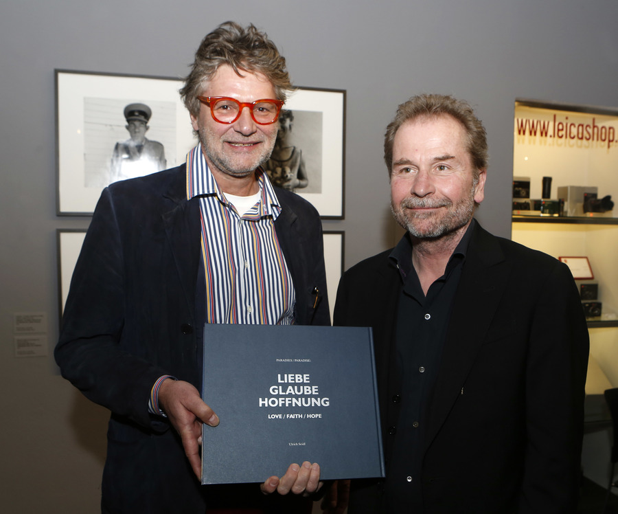Few people would have thought that a panel discussion about Love, Faith and Hope would be such an entertaining event. On Monday night however, the audience in the packed auditorium of WestLicht learned that this is indeed possible. For the first time, film maker Ulrich Seidl presented his book Liebe, Glaube, Hoffnung (Love, Faith, Hope), which accompanies his acclaimed film-triology Paradies (Paradise), to the Austrian public. Seidl had invited two illustrous guests to join him on the podium: Cultural critic and philosopher Herbert Lachmayer, director of Da Ponte Research Center in Vienna and Claus Philipp, co-editor of the book and head of Vienna Stadtkino. They chatted wittily about the book and the film and discussed the impact and power of Seidl’s visual language. Afterwards, the host of the evening, Peter Coeln, owner of WestLicht, invited the guests, among them actress Maria Hofstätter and Wolfgang Thaler, director of photography of Seidl’s films, to join him for a glass of wine and to visit the current Roger Ballen exhibition, still on show at WestLicht until 28 April.