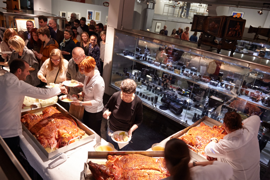 Every year, WestLicht invites its members to a members' party! In the exclusive setting of the exhibition Eyes Open! 100 Years of Leica Photography, WestLicht owner Peter Coeln welcomed almost 200 of the total of 450 WestLicht members to the traditional suckling pig and raffle.